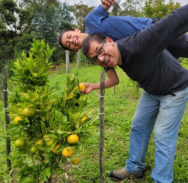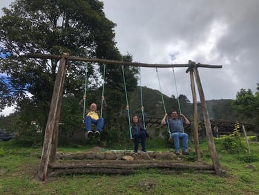 En el año 2019 mis hermanos y yo (los de la foto del columpio) adquirimos una hectárea de terreno y la bautizamos con el nombre de Finca Villa Marina en honor a nuestra madre.