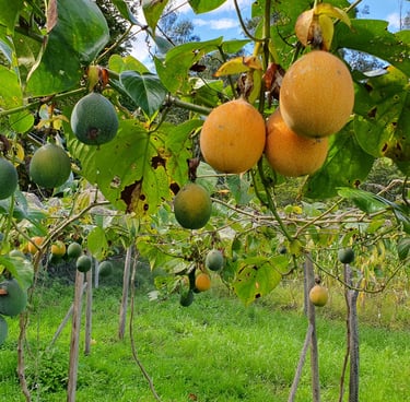 Sembramos granadillas, lulos, tomates, naranjas, mandarinas, aguacates, brevas, bananos, feijoa, entre otras. Varios de estos arbolitos ya comenzaron a producir.