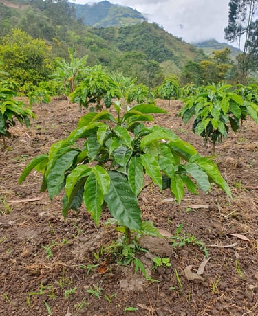 Los cafetales están rodeados de arboles frutales y amplias extensiones de zonas verdes, es 100% procesado en nuestra región desde su germinación hasta su secado, todos los procesos son manuales realizados por habitantes de la región.